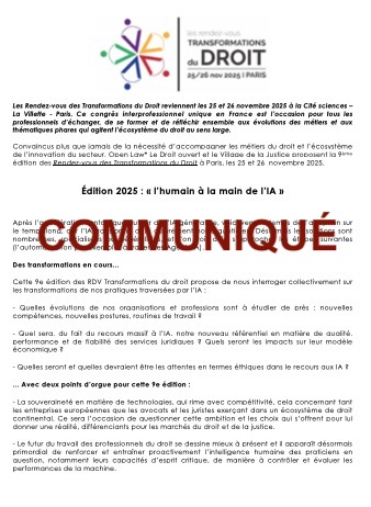 Pour toute demande presse, écrivez-nous à congres chez transformations-droit.com et nous ferons le maximum pour vous faciliter la visite du 1er Congrès francophone européen sur l’innovation juridique 🙂